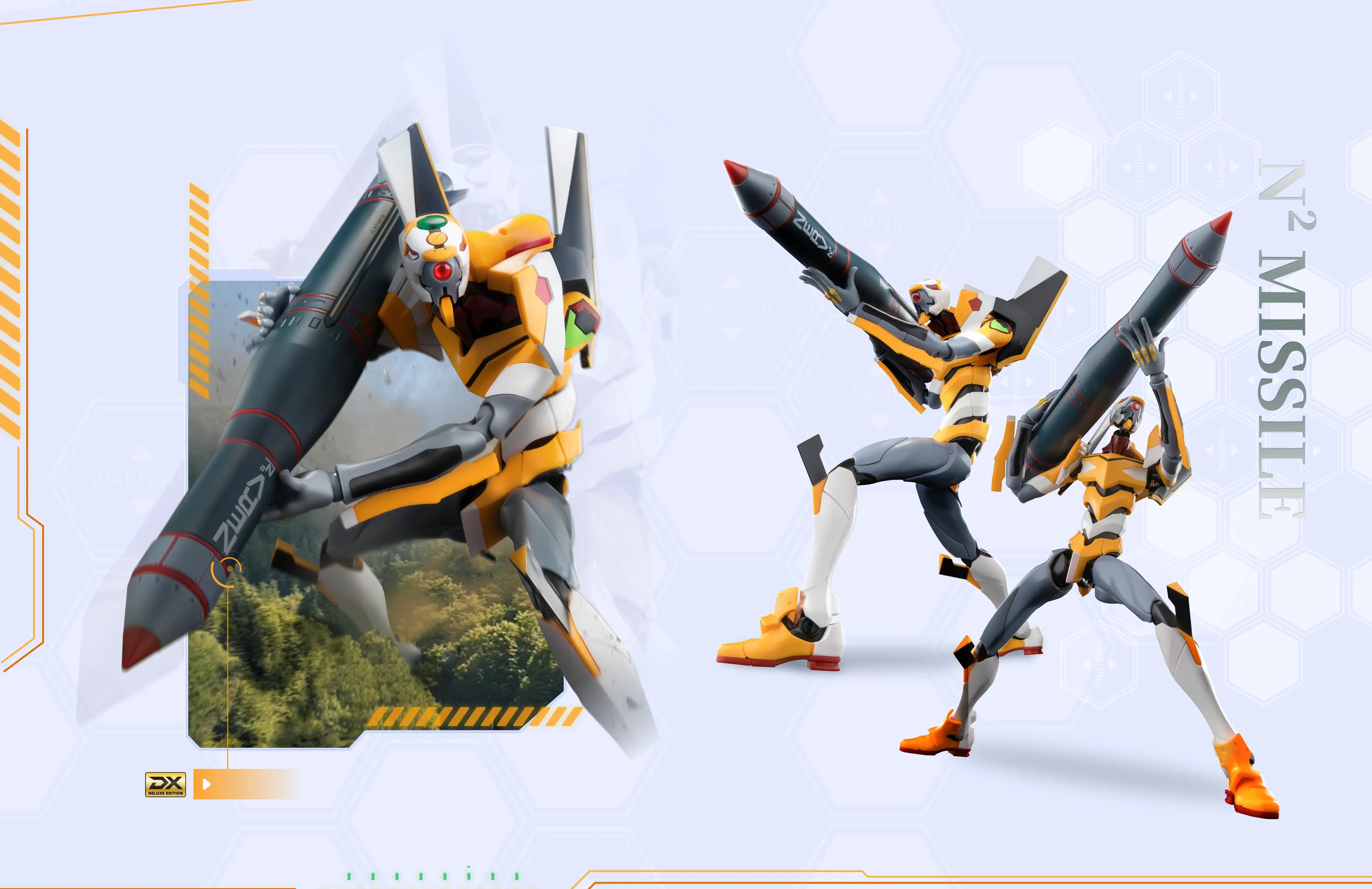 Experience the definitive Action Edition DX Evangelion Proto Type-00' model kit with full-body articulation, screen-accurate detailing, and a 17cm height. Includes Umbilical Cable, Pallet Rifle, Ruined Building, and Restraints with Transport Floors, plus the ESV Shield, dynamic ESV Effect Parts, and the devastating N² Missile for iconic combat scenes. 5 interchangeable hands ensure expressive posing worthy of the Evangelion legacy.