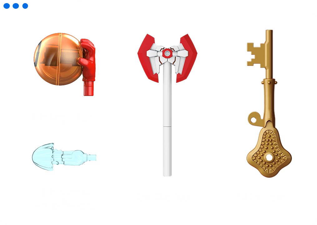 - Battle-ready weapons & accessories for each character