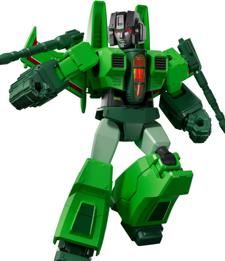 Acid Storm is an impressive model kit with a radiant chest glow and intricate details. The fighter jet disguise is sleek, and the articulation allows for dynamic aerial poses. The UV-reactive materials make it a unique addition to my collection. Love it!