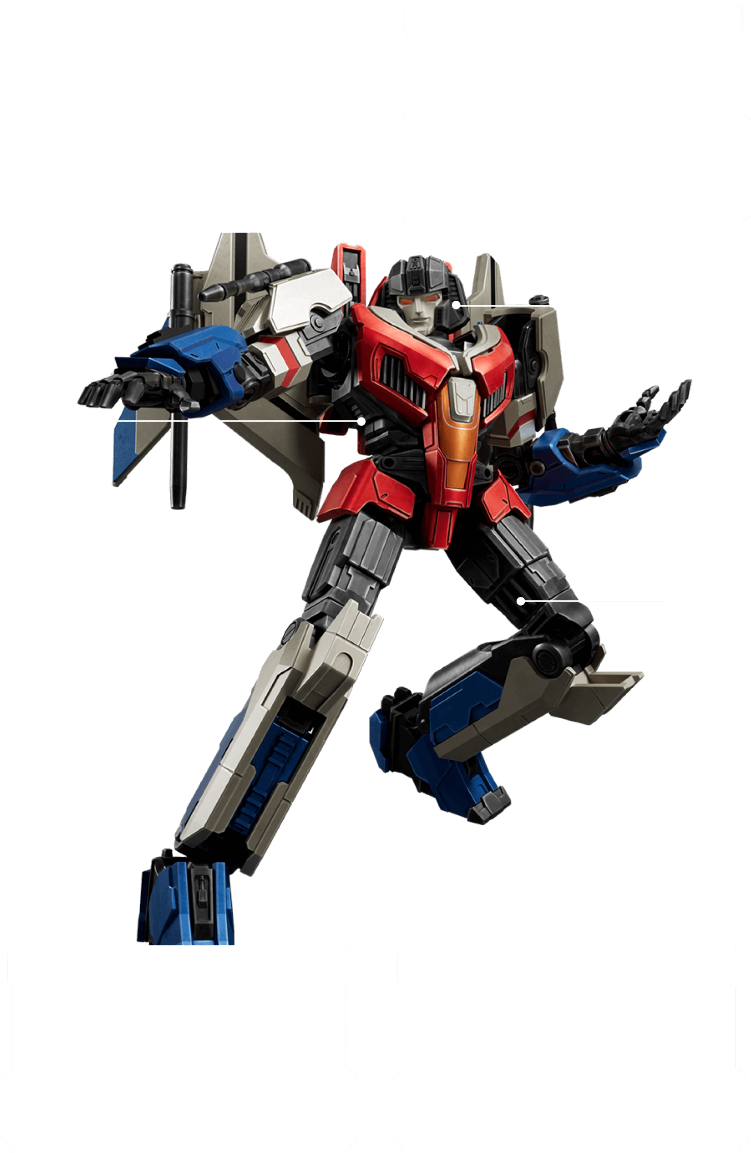 Built-in LED modules power up Starscream's eyes and chest with dramatic lighting effects, making this Decepticon leader truly come alive on display.
