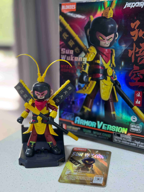 Includes metal armor plates, interchangeable hands, exclusive cards and DIY options. The theatrical facial design perfectly captures the Monkey King's mischievous spirit—a standout centerpiece for any Herospire collection.