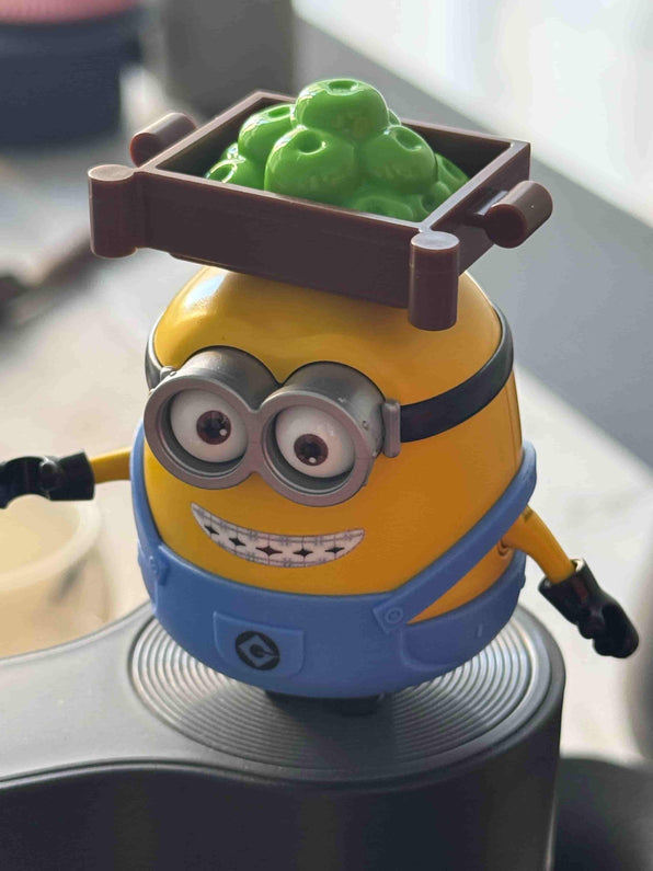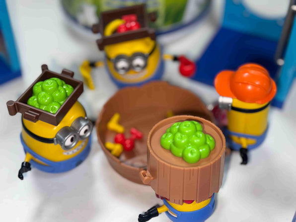 Collect all four sets to assemble the entire Jelly Factory. Each character comes with their unique workstation and role: Bob (Fruit Keeper), Otto (Fruit Handler), Stuart (Jelly Maker), and Kevin (Jelly Taster).