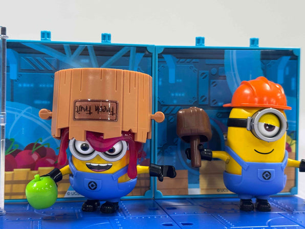 Spark Joy when you collect all four sets! Connect them to create the complete Jelly Factory with modular scene panels that can be arranged horizontally or vertically for endless layout possibilities. Watch Bob struggle with spilled jelly, Stuart smash fruit in his bowl, Otto stack apples, and Kevin taste-test the final product—each with their exclusive themed props and customizable dress-up options.