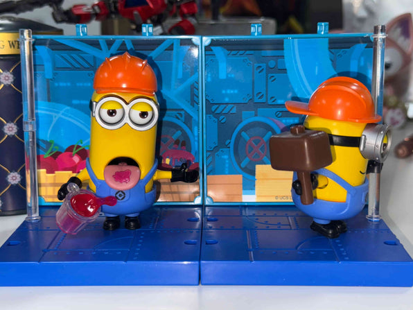 Each set includes a mini stage or piece of “factory equipment.” When you collect all four characters (Bob, Otto, Stuart, and Kevin) and connect their scene pieces, you build the complete Jelly Factory—perfect for imaginative play scenarios!