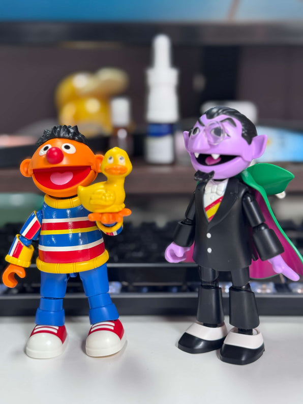 Whether you're recreating classic Sesame Street moments or inventing new adventures, these detailed model kits make playtime extra special. At just the right size for little hands (11-13.5cm tall), they're ideal companions for Sesame Street fans of all ages. Celebrate 55 years of learning and laughter with Ernie, Bert, Oscar, and Count - your colorful neighborhood friends who are always ready for a high five and a smile!