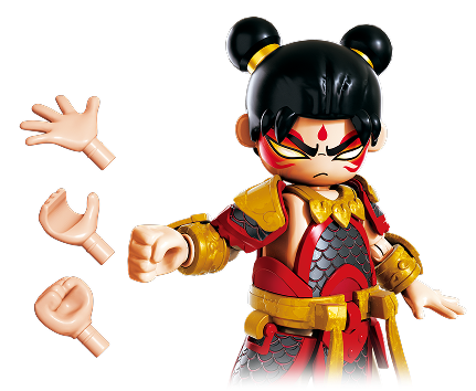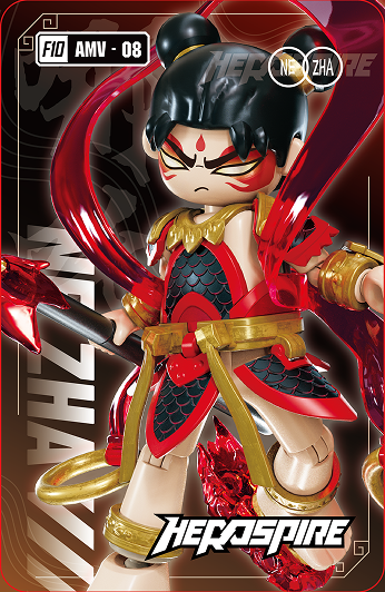 You’ll receive the Herospire NeZha figure, three interchangeable hands, Red Armillary Sash, Universe Ring, Fire Point Spear, a collectible base, Identity Card, Hero Card, sticker sheet, and an instruction manual.