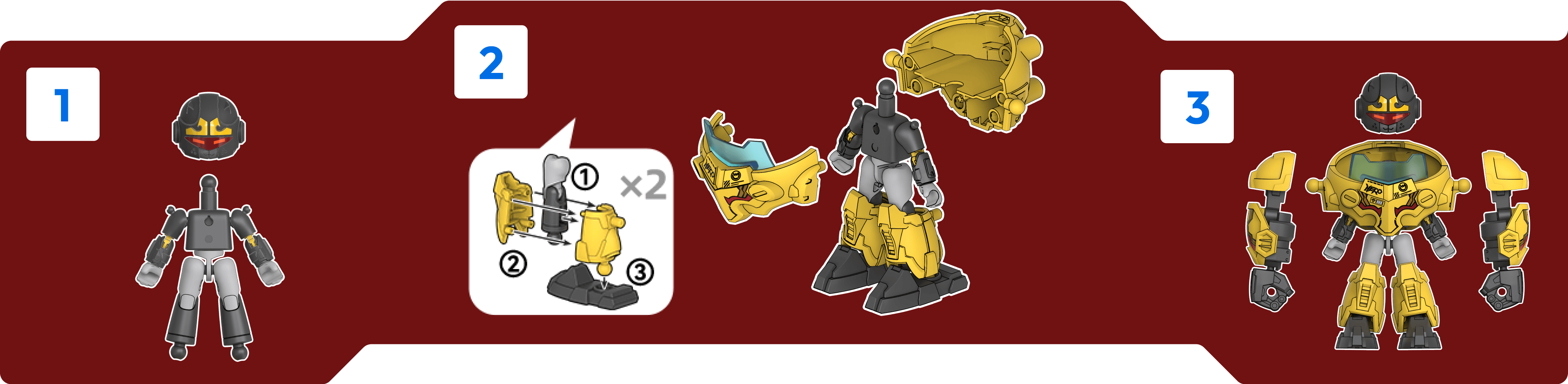 The model kits offer a variety of play patterns: assembling, role-playing, swapping armor, posing, strategic card battles, and collecting chase model kits.