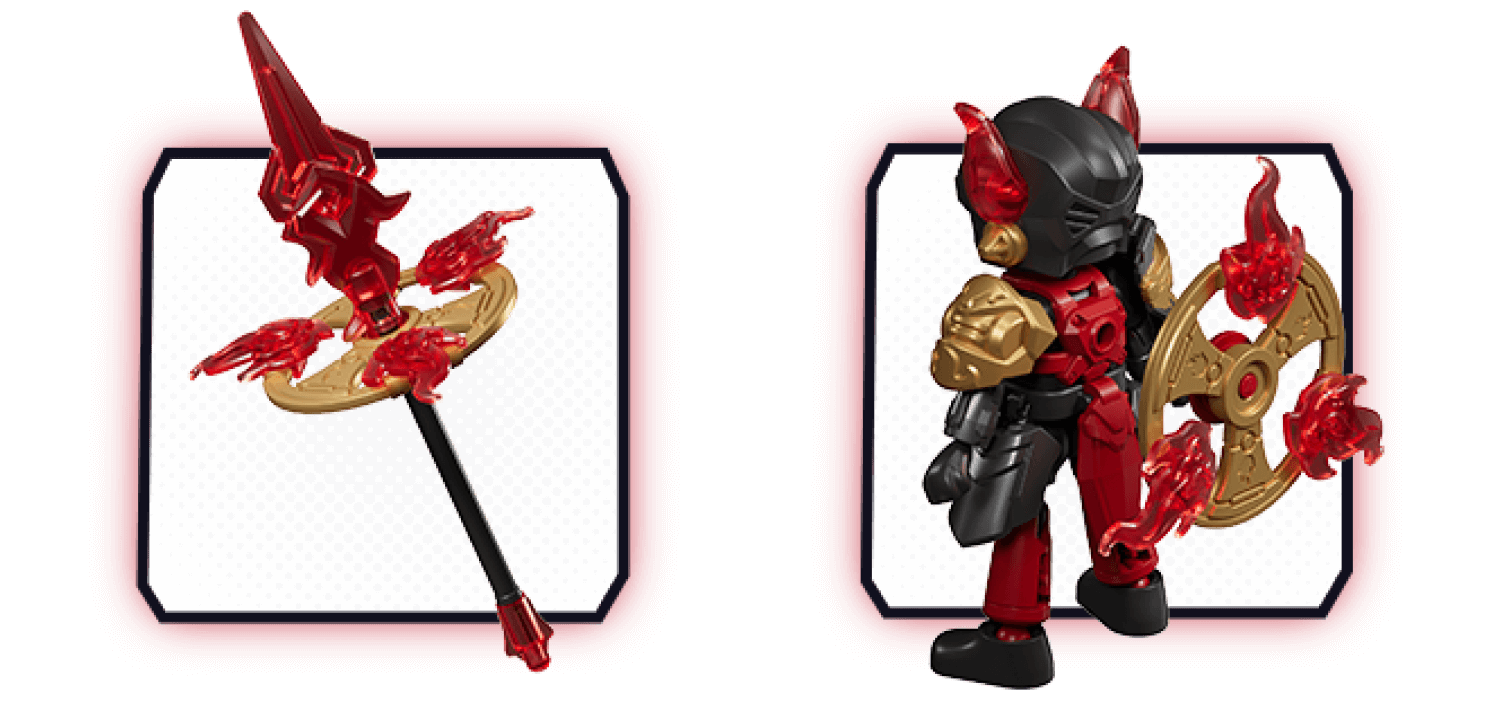 Definitely! Many characters have swappable armor, weapons, or attachable accessories (like Red Boy’s rotating fire wheels), encouraging creative assemble and custom synergy—especially for “Creation Heroes.”