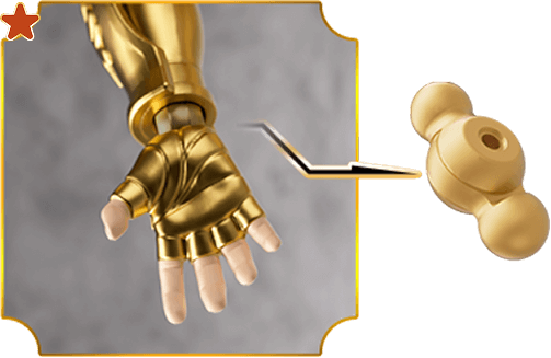 Exclusive effect parts Includes an exclusive display stand with character-specific accessories