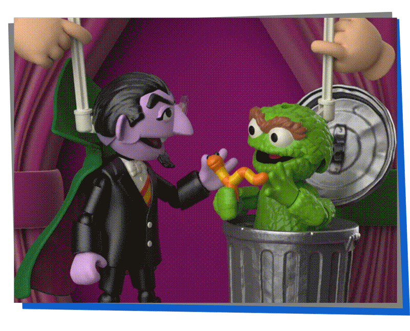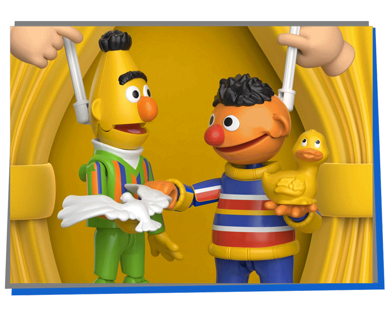 Assemble them, pose them, then make them talk with the magic puppet-action lever that brings Sesame Street home!