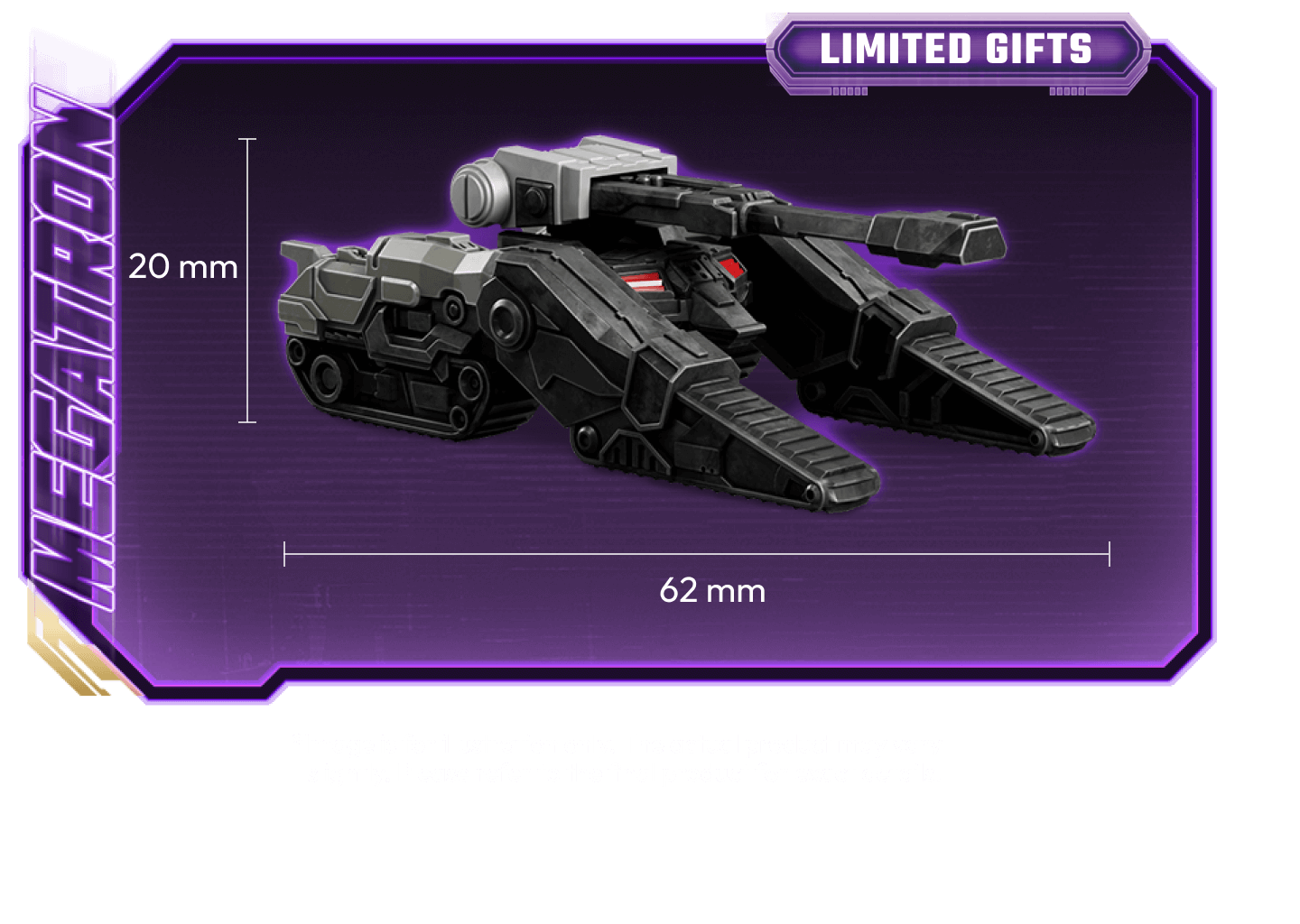 Ready to join the Decepticon ranks? Your kit includes battle accessories, two display stands, and an exclusive bonus Megatron vehicle (62x20mm). Don't miss your chance to own this collector's piece.