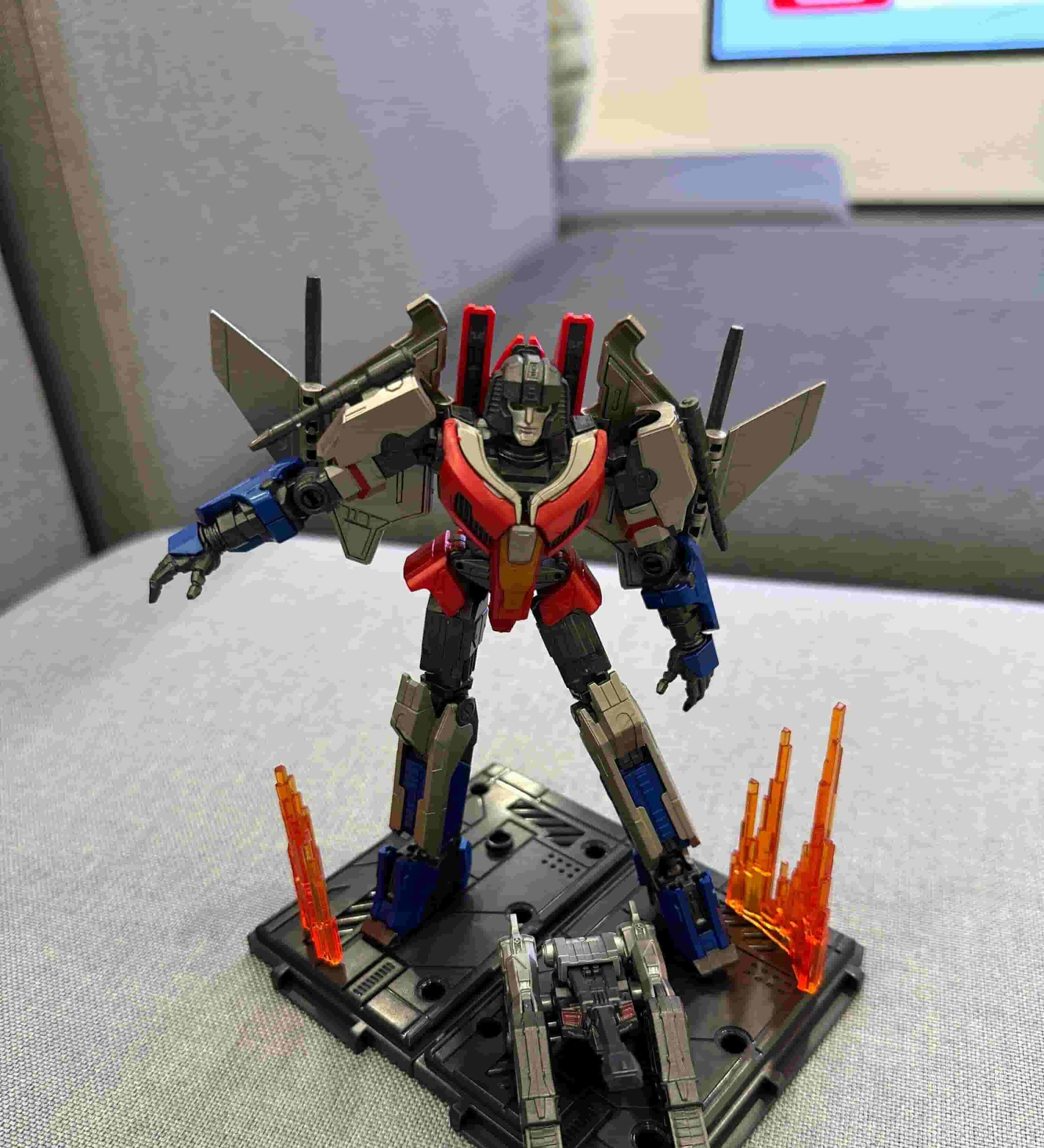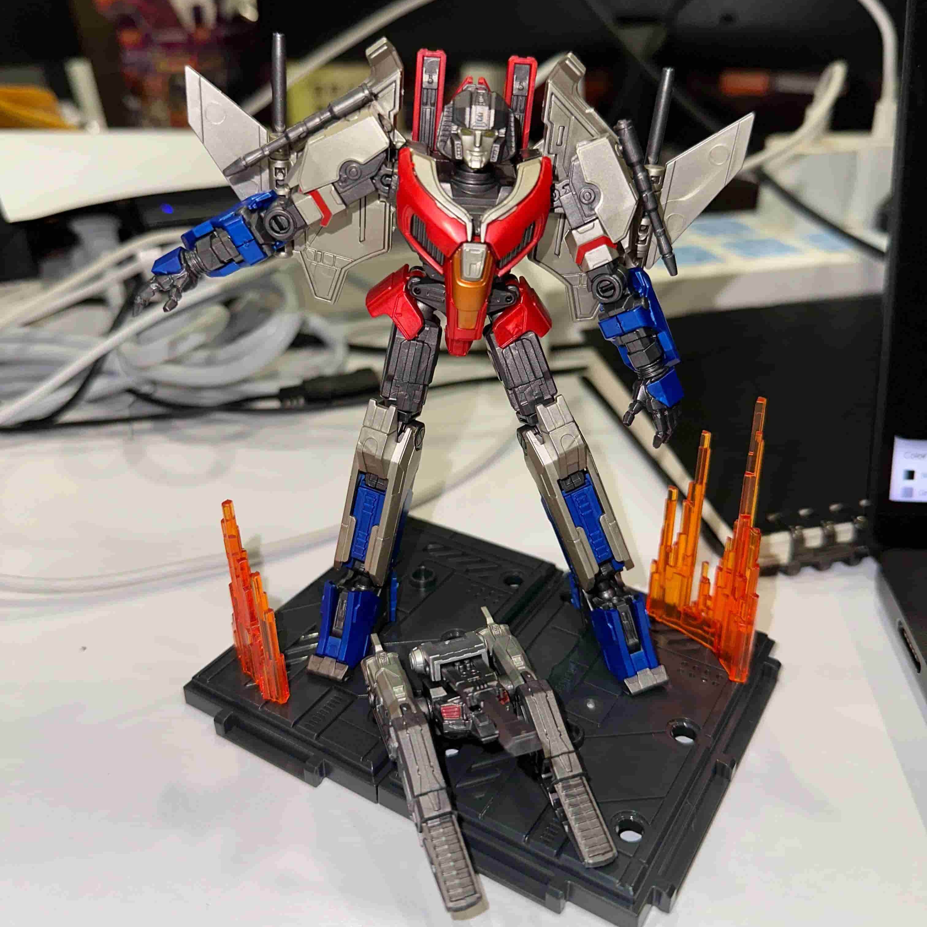 This Starscream is living his best life on my shelf, plotting tiny rebellions against my other model kits. The articulation is incredible - you can pose him in full scheming mode or mid-flight. Those LED eyes make him look alive at night! Worth every penny for us collectors.
