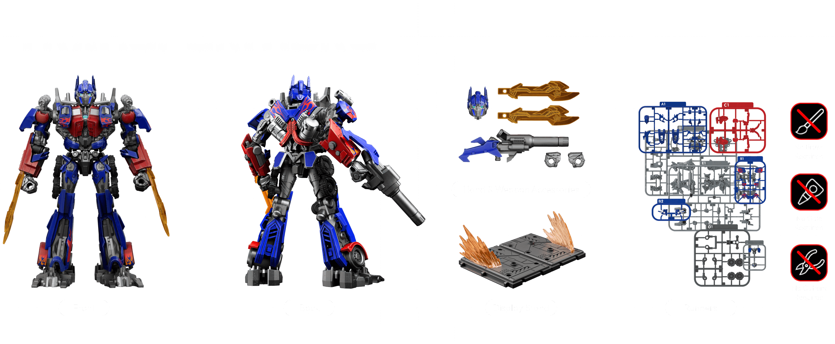 Faithfully replicates the movie image of Optimus Prime with exquisite body detailing.