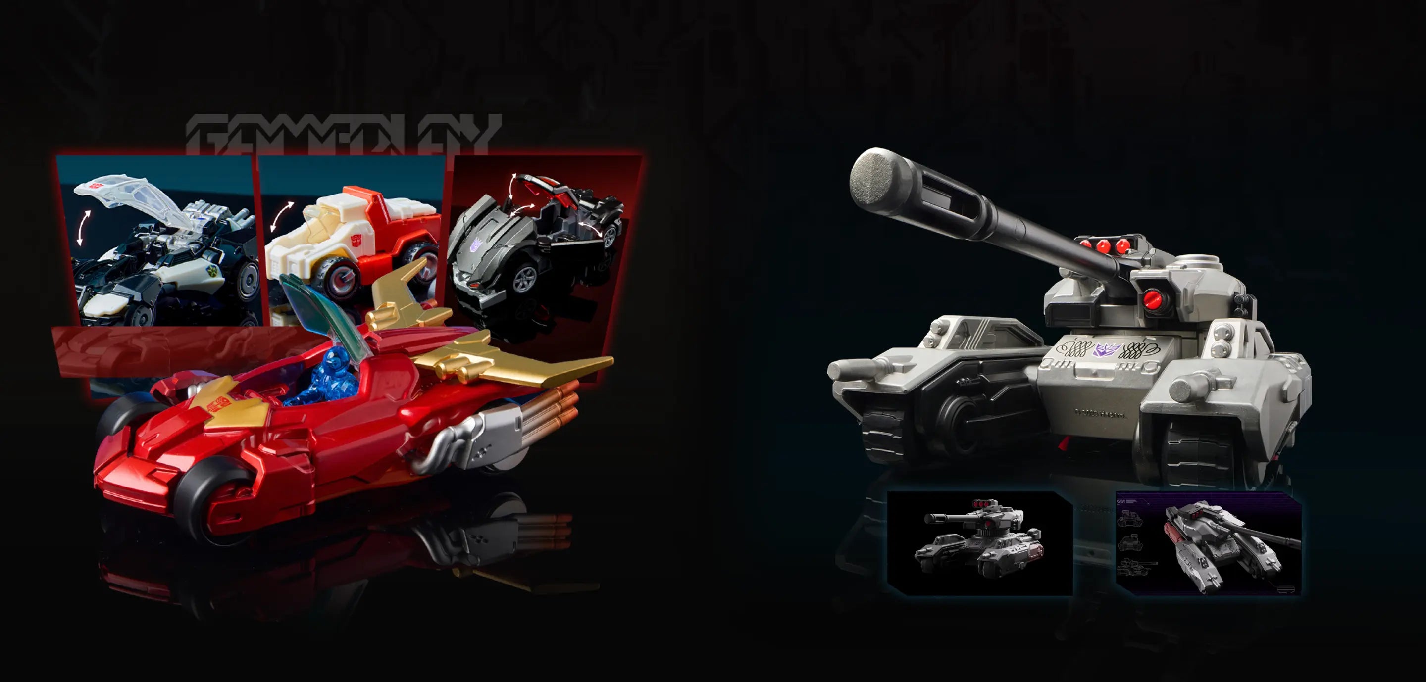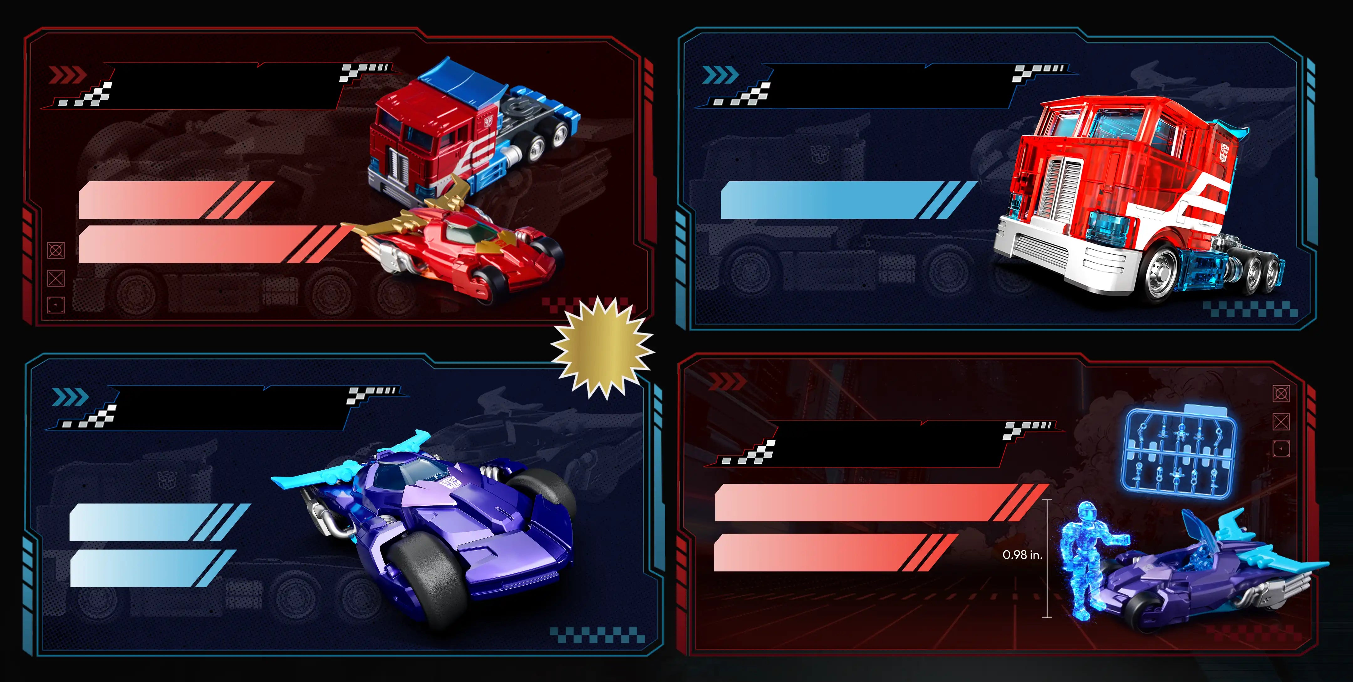 The vehicles are designed in 1:64 scale, with accurate shaping and panel detailing inspired by the original Transformers characters.
