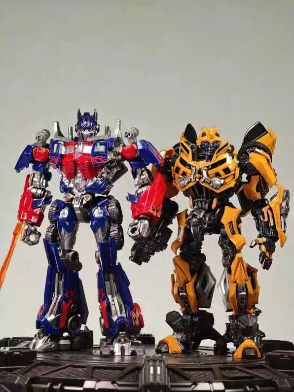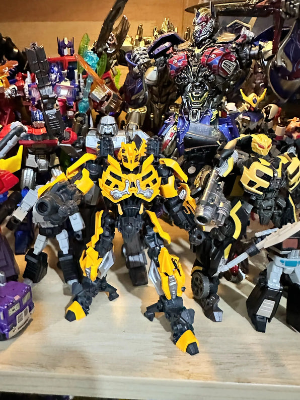 Bumblebee joins elite Cybertron warriors in a battle-ready lineup, featuring dynamic poses, intricate armor details, and iconic weapons for a standout shelf display.