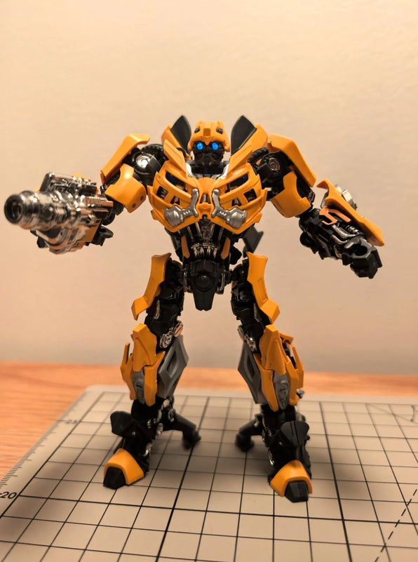 This is exactly how I remember Bumblebee from the Chicago fight. The armor, the stance, the weapons, everything feels like it’s mid-battle. Parts click together nicely and once it’s on the stand with the lights on, it looks like a small premium display piece. 🤖