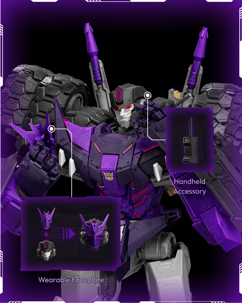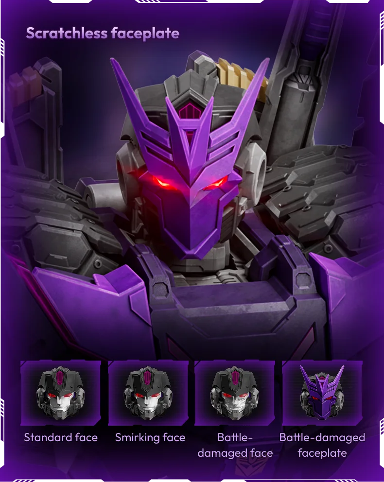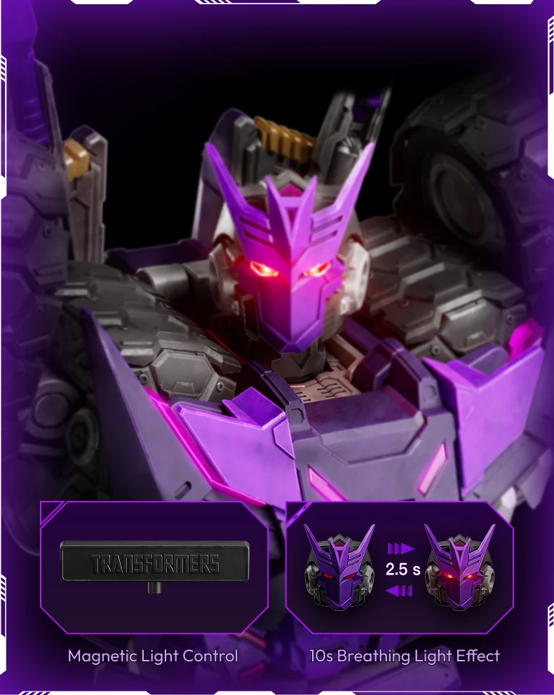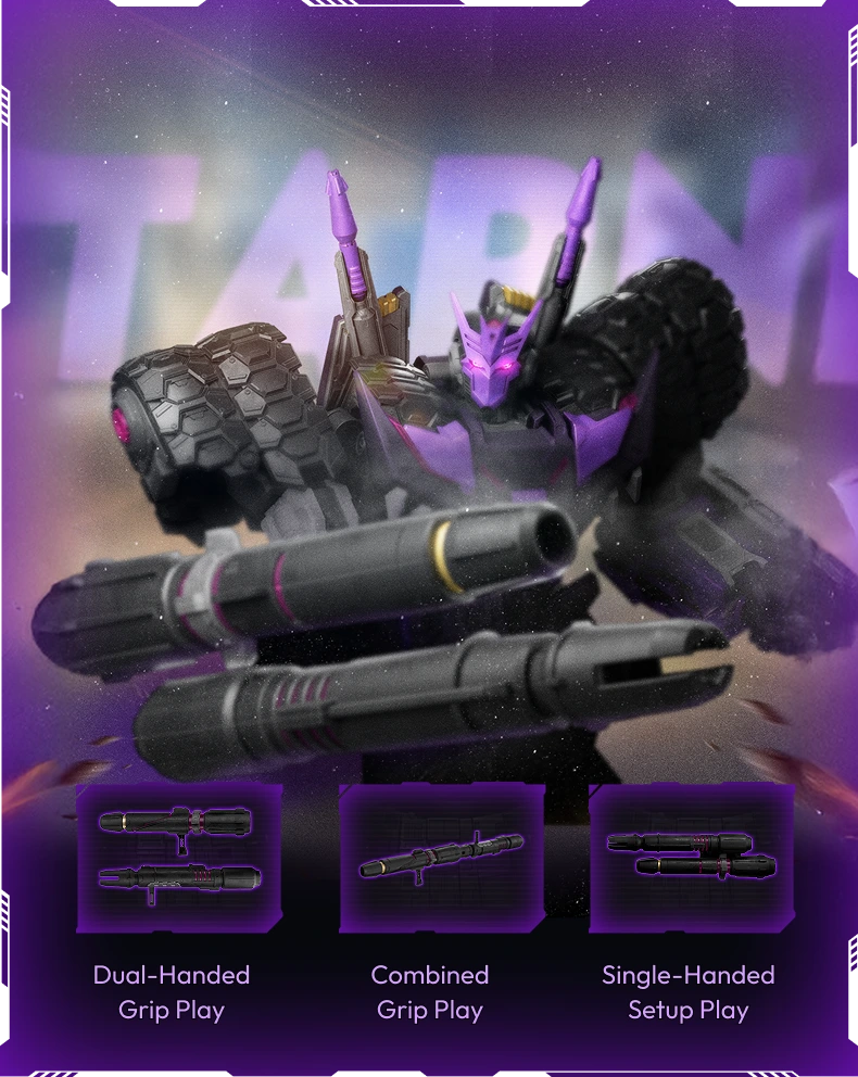 Unleash the power of Tarn, the fearsome DJD leader, with this Tarn Comic Version collectible. Composed of 333 pieces and featuring 64 points of articulation, it allows for dynamic and intense poses. The magnetic control breathing light effect adds to his intimidating presence, while interchangeable faceplates and battle-damaged accessories enhance the realism. A must-have for any Transformers fan seeking to showcase this iconic Decepticon warrior.