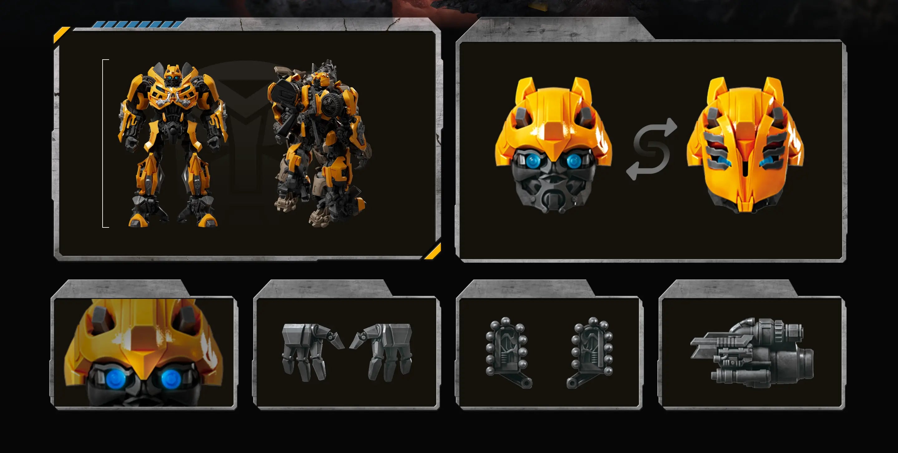 You get the Bumblebee kit parts, a display stand, interchangeable hands, two head sculpts, weapon parts, effect parts, and an instruction booklet.