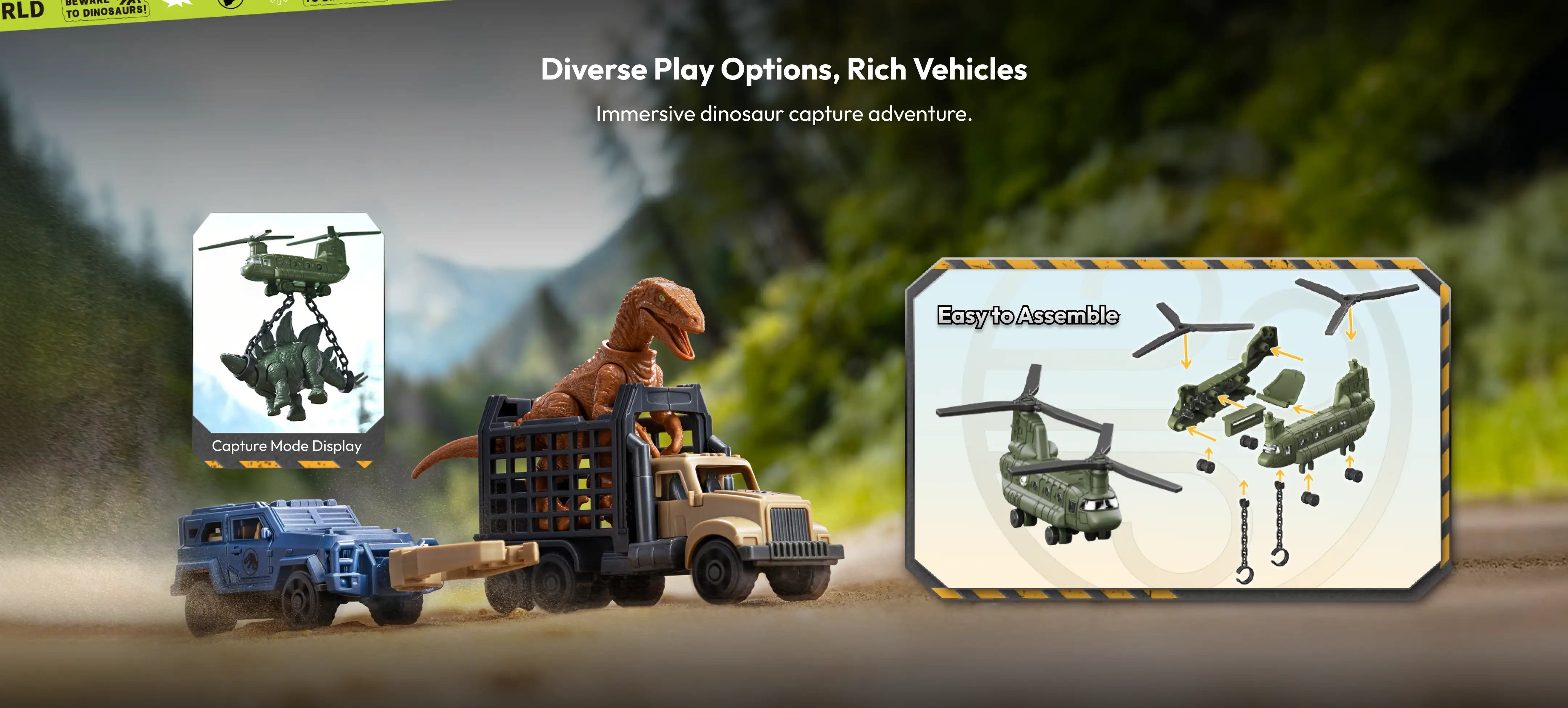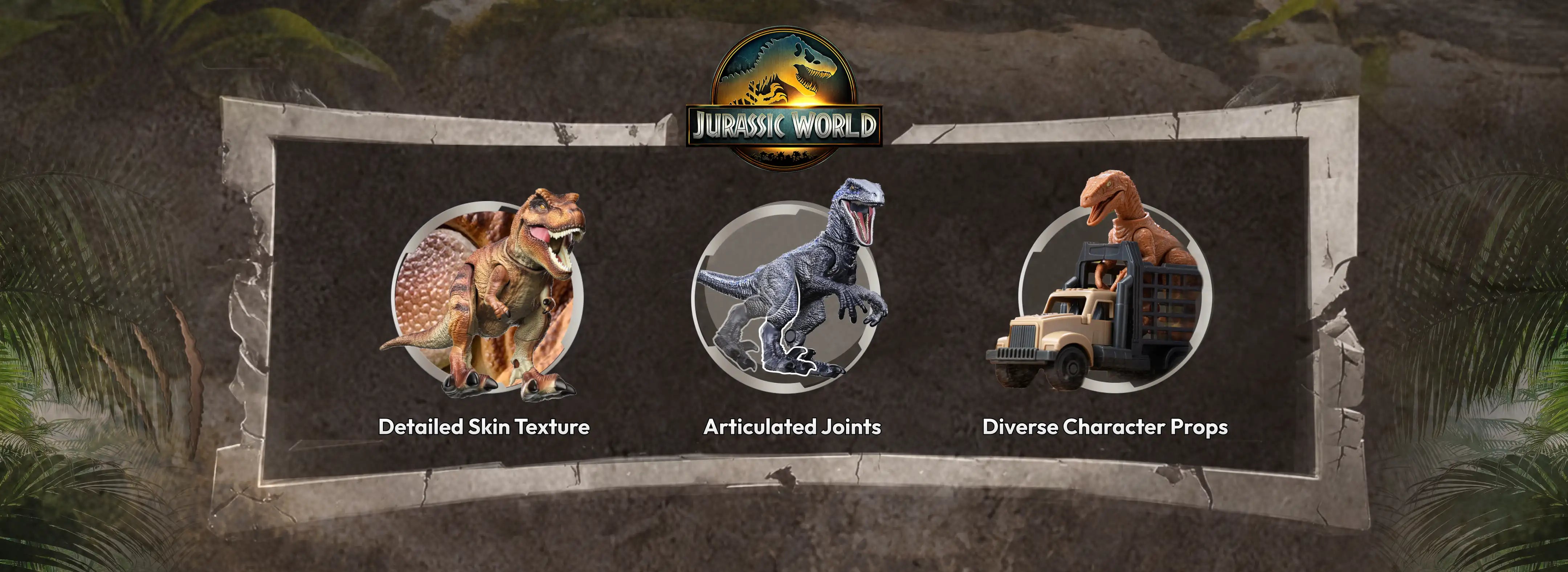 Enhance your collection with a variety of props like the Helicopter, Heavy-Duty Transporter, and Capture Vehicle, adding dynamic elements to your dinosaur adventure display.