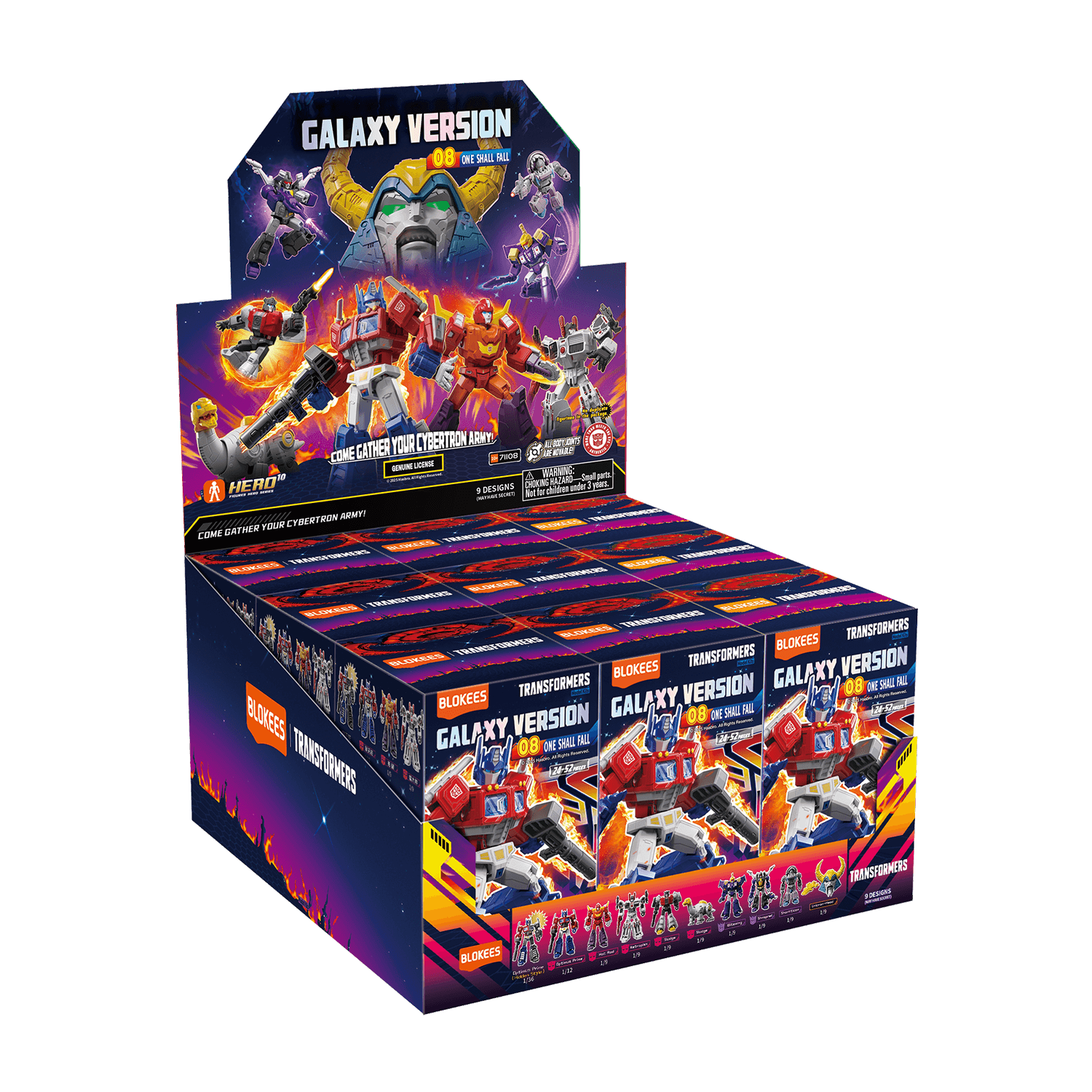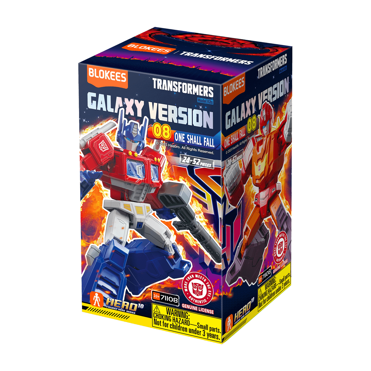 Transformers Galaxy Version 08 One Shall Fall brings the showdown of Transformers: The Movie (1986) to life. Officially licensed set with 9 model kits, 24–52 pieces each, fully articulated and well-proportioned.